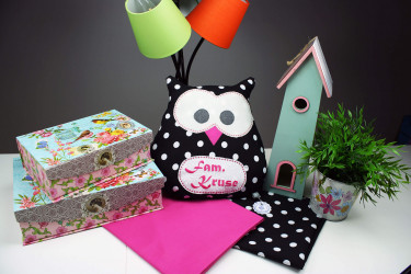 Heute berichte ich Euch von Eulenfamilien, denn meine Eulen sind mittlerweile zu Geschenken zu den verschiedensten Anlässen geworden. Das hätte ich anfangs nicht gedacht. Angefangen hat es ja mit einem einfachen Wäscheklammerbeutel. Mittlerweile könnte ich Eulenfamilien von groß ( 35cm ) über mittel ( 23cm ) bis klein ( 18cm ) präsentieren, die ein neues Zuhause bei netten Familien gefunden haben. Hier auch mal ein Gruppenbild. Ich bin ganz stolz auf meine erste Fußball-Fan Eule, die sich mittendrin tummelt: