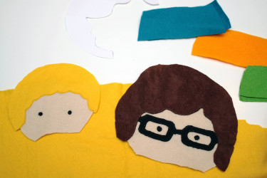Nachdem die Familie fertig genäht war, hat mich eine Figur besonders an die Serie Scooby-Doo erinnert. Ganz zufällig sieht die Farbauswahl aus orange und rot und den braunen kurzen Haaren und der Brille zumindest ein wenig der Detektivin Velma Dinkley ähnlich.