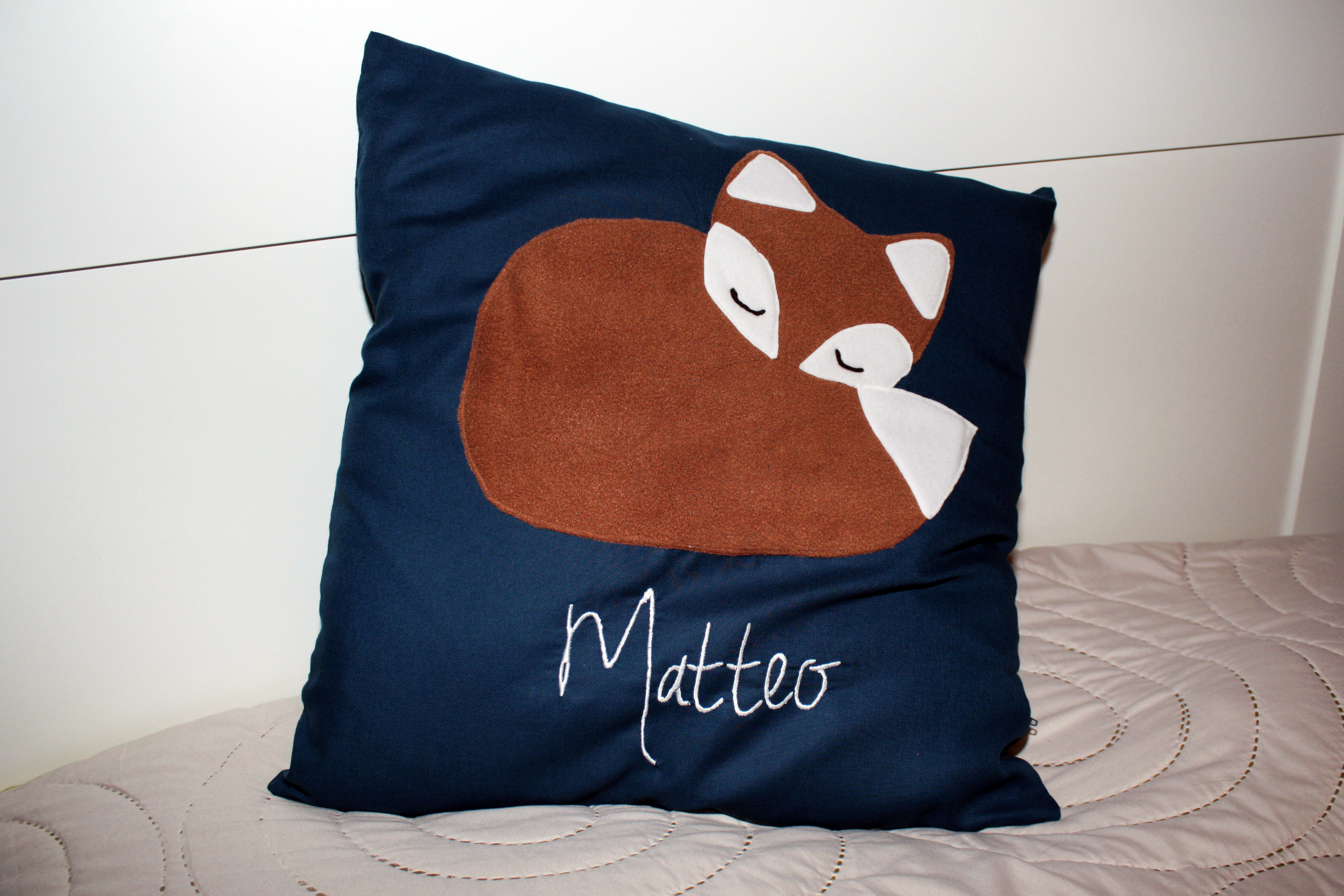 Zur Taufe gab es für Matteo ein Fuchskissen mit einem kleinen schlafenden Fuchs. :)