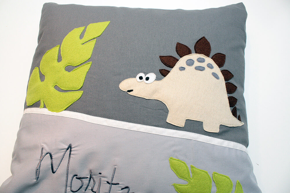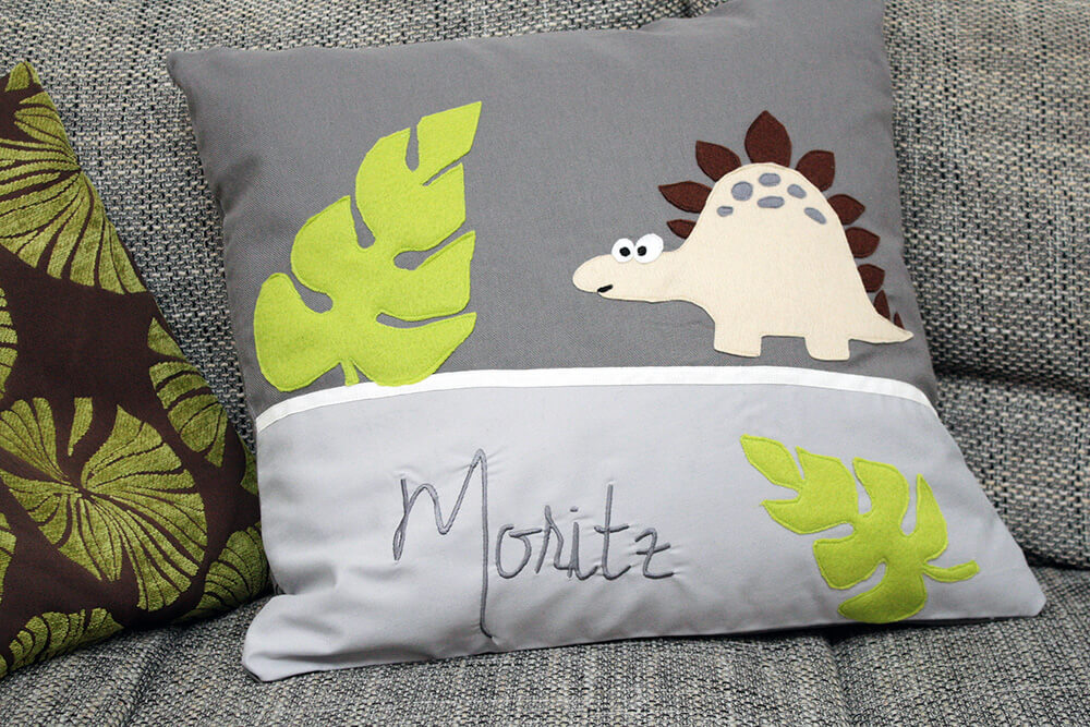 Bei einem unserer letzten Besuche durfte ich die große Dinosauriersammlung von Moritz kennenlernen. Passend dazu steuere ich gerne ein Dinosaurierkissen für das neue Kinderzimmer bei. Nur welchen Dino nimmt man am besten? Es gab ja wirklich viele und einen Lieblingsdino gibt es nicht. Ich habe mich für folgenden Dino entschieden: