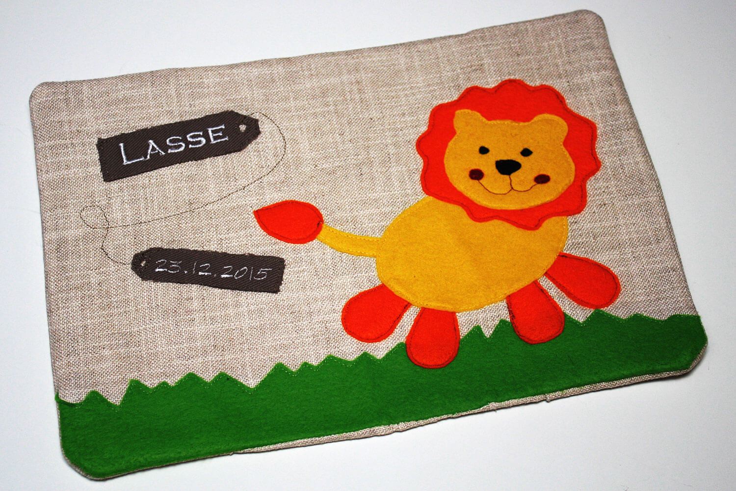 Ganz im Zeichen des Löwen stand ein Auftrag für ein Babygeschenk. Es sollte ein Dreieckstuch, eine Wärmflasche sowie eine Untersuchungshefthülle sein. Ich lasse heute mal wieder kurz und knapp die Bilder sprechen.