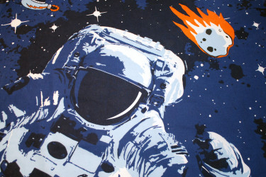 Aus dem bedruckten Stoff mit Weltall und Astronauten-Design ist deshalb kurzerhand ein simpler Turnbeutel mit kleiner Innentasche entstanden. In diesem Fall gleich zwei, also aus der Vorder- und der Rückseite des Stoffes.