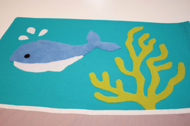 Den Auftrag habe ich gern angenommen und ein passendes Kissen mit einer Wasserwunderwelt genäht. Ich habe mich für einen kleinen Wal und quietschgrüne Wasserpflanzen entschieden. Seht selbst: